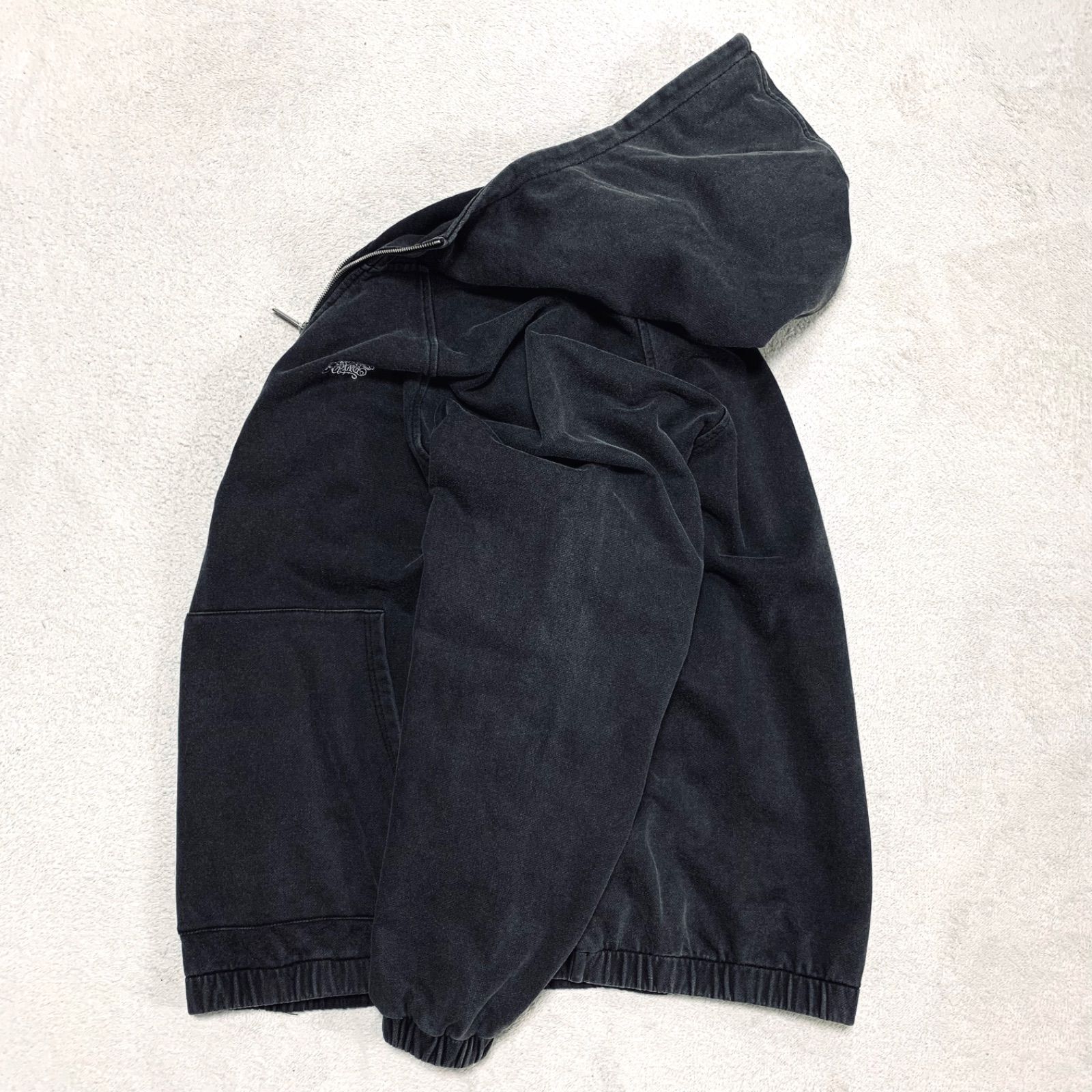 BUDSPOOL PIGMENT DYE CLASSIC LOGO HALF ZIP HOODED SWEAT SHIRT スウェットパーカー フーディー ハーフジップ ピグメント加工 ロゴ刺繍 舐達麻 Lサイズ ブラック スミクロ 黒系 バッズプール