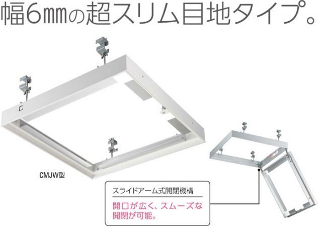 外枠に設けた小さな額縁によりスムーズな取付が可能 ●スライドアーム開閉機構:開口が広く スムーズに開閉します