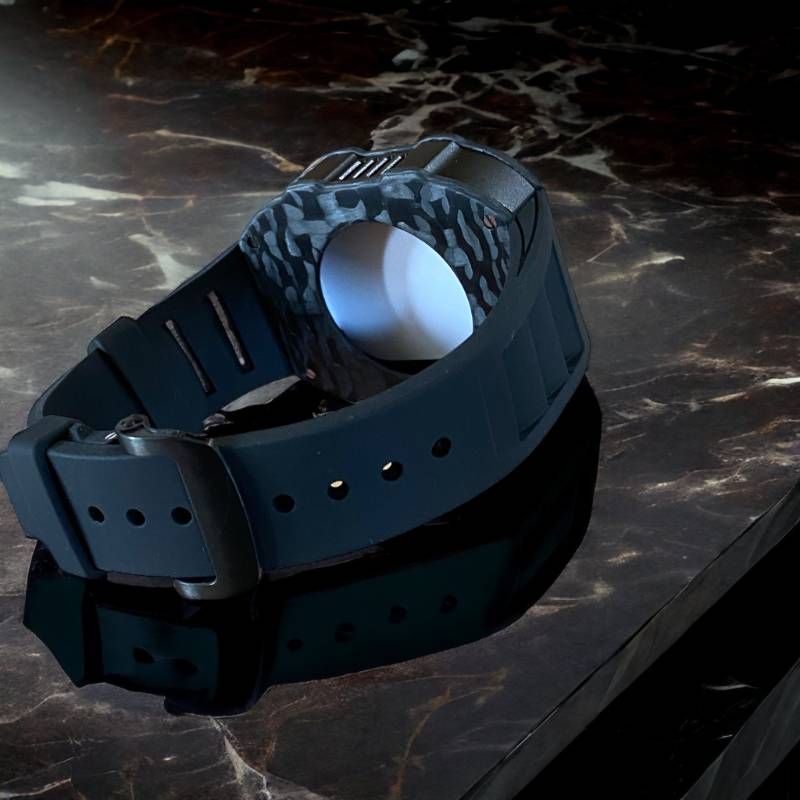 透明感のあるポリカーボネート製スケルトンカバーと、上質なフッ素ラバーベルトを組み合わせたApple Watch用セット。