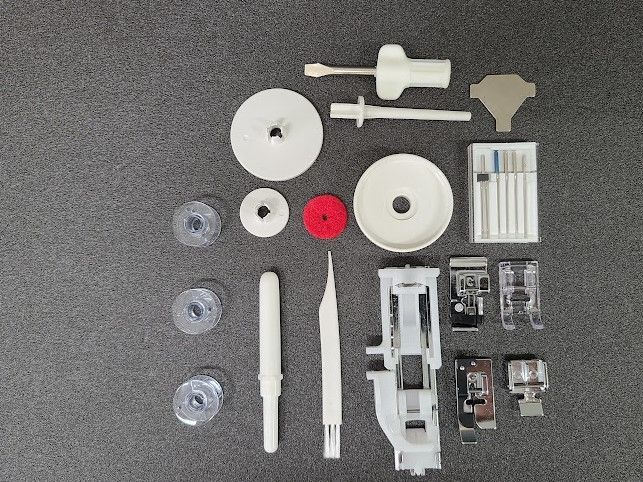 店舗などで展示していたミシンですので、外箱に配送伝票などの貼り付けを剥がした跡・若干のべたつき・破れ・潰れ・劣化、ビニール破れ・中の発泡スチロールに割れがある場合もございますが動作や縫い目に問題はございません。