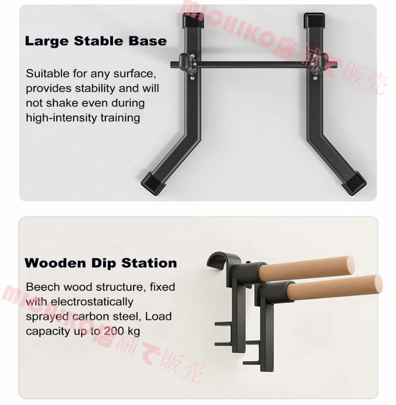 【素材】:パワータワーの重量は25kgで、極厚スチールパイプ製で、丈夫で耐久性に優れ、最大200kg/440ポンドの耐荷重があります。ハンドルはブナ材で作られており、細かく彫刻され磨かれており、表面は非常に滑らかで、非常に快適な感触で、割れにくいです。滑り止めの脚が付いた厚手のスチールベースは、しっかりとしたグリップを提供し、揺れることなく安定しており、あらゆる種類の床に適しています。