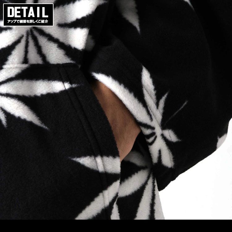 HUFお馴染みのPLANTLIFE柄を全面に落とし込んだデザインの総柄フリースポンチョです。