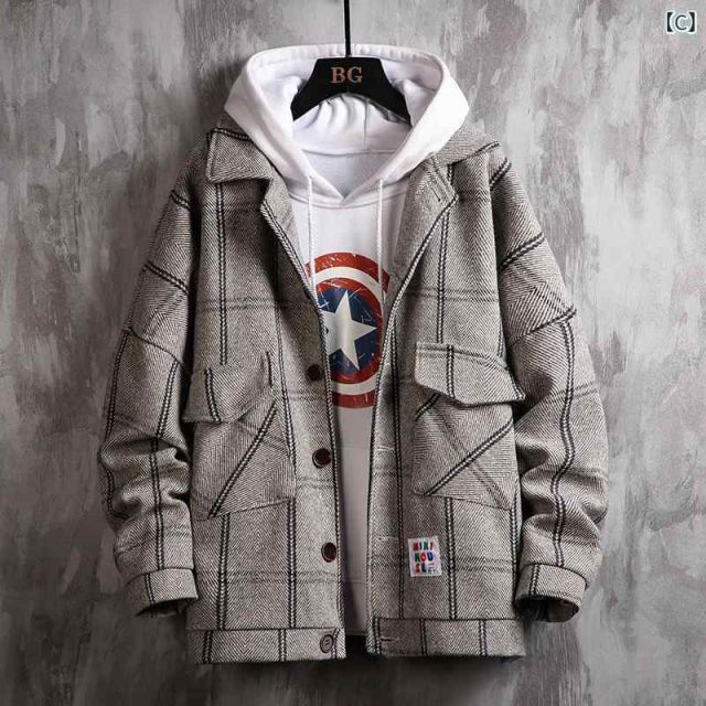 3 XL 秋冬 コーデ メンズ 服 シンプル ファッション オシャレ 大人 かっこいい 大きいサイズ ストリート 紳士服 チェック柄 ウール ジャケット 綿 厚手 コート ゆったり