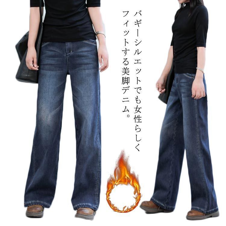 裏起毛 パンツ デニムパンツ レディース ワイドパンツ ワイド 大きいサイズ ジーンズ ジーパン ボトム 体型カバー ボトムス ストレート ズボン ハイウエスト ゴム ストレッチ 秋 冬 春 防寒 保 anue 0046