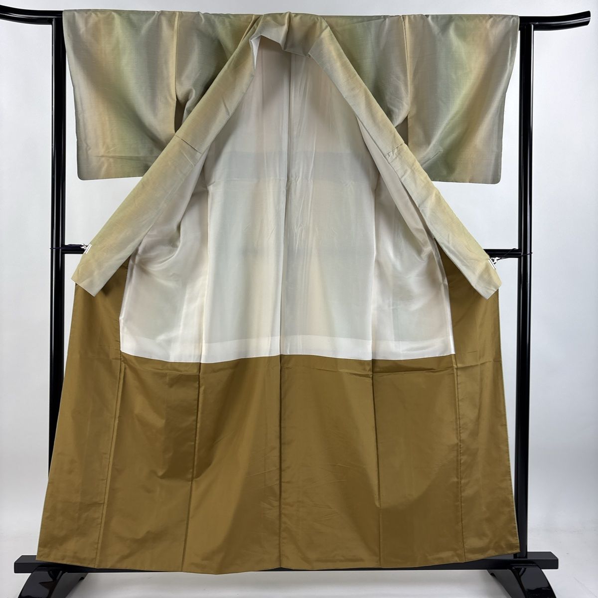 紬 身丈159.5 cm 裄丈63 S 袷 縦ぼかし 薄緑 正絹 秀品
