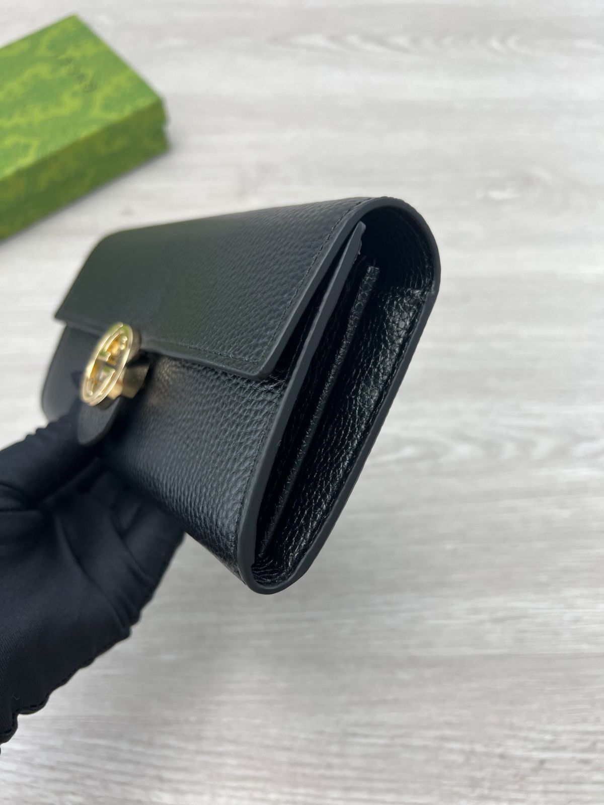 GGスエードレザー ロングウォレット ブラック イタリア製 環境配慮型レザー