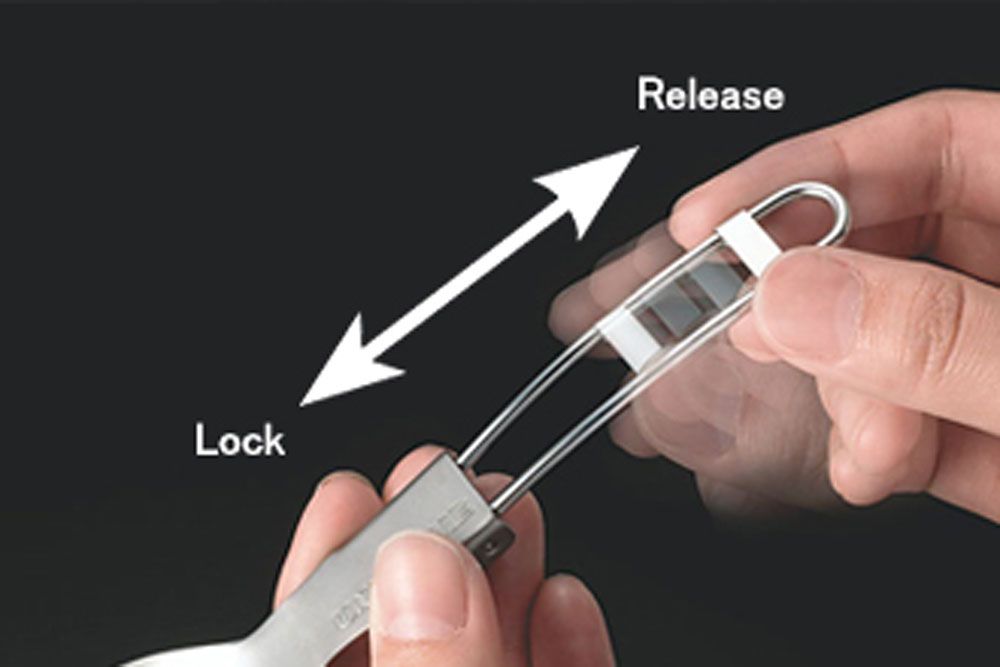 フォールディングする軽量なチタニウム製。収納ケースは別売のカラカトケースをご使用ください。