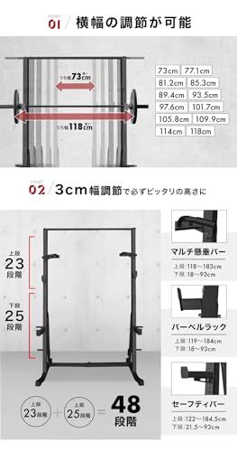 BARWING バーウィング 横幅調節機能搭載&48段階×3 cmの高さ調節 ハーフラック パワーラック バーベルスタンド ベンチプレスラック スミスマシン ぶら下がり健康器 懸垂マシン 筋トレ マット コンパクト シャフトラック セーフテ a 46 0 f 2