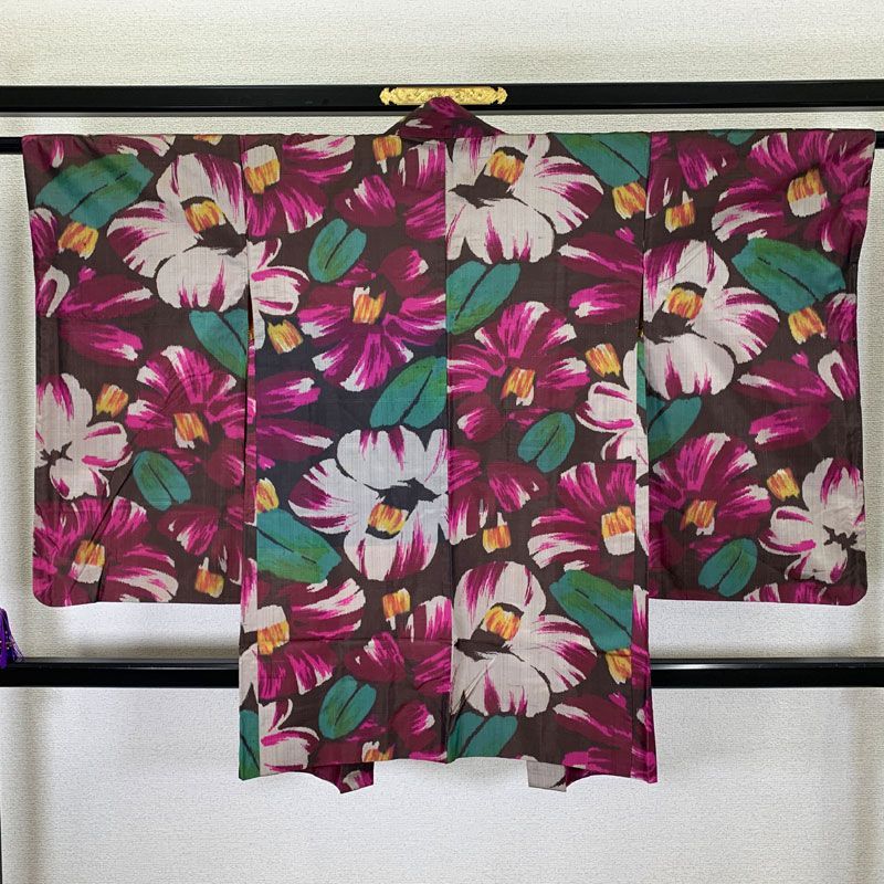 511 aa 15 アンティーク羽織 銘仙 椿 大輪 大正ロマン 昭和レトロ レトロポップ