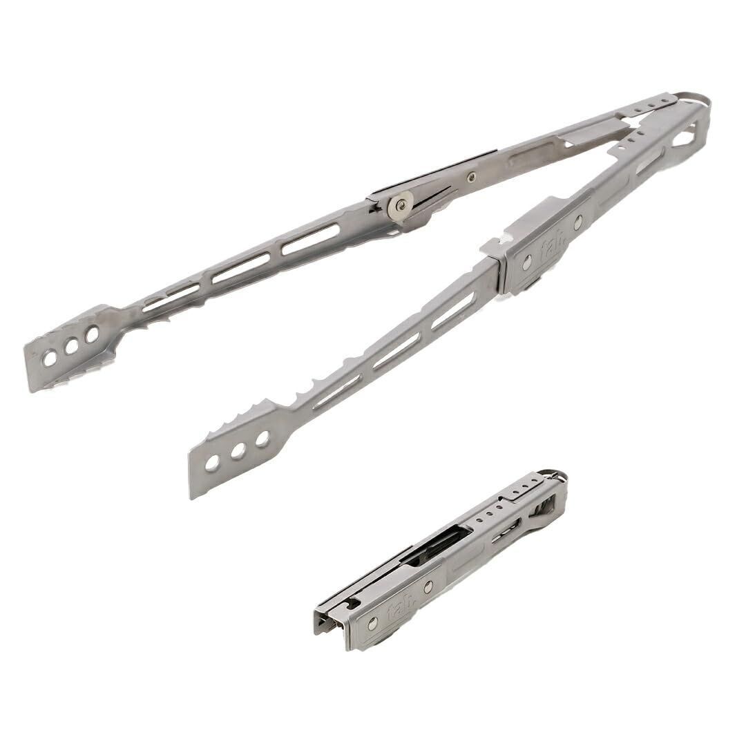 Tab. Extong (エクストング)ロングタイプ 折りたたみトング 薪バサミ 火バサミ キャンプ 軽量 ステンレス コンパクト 焚き火 ロック 変形 掴みやすい 小さくたためる焚火 持ち運び ギアケース ペグケース 枝 BBQ 調理 ッチオーブン