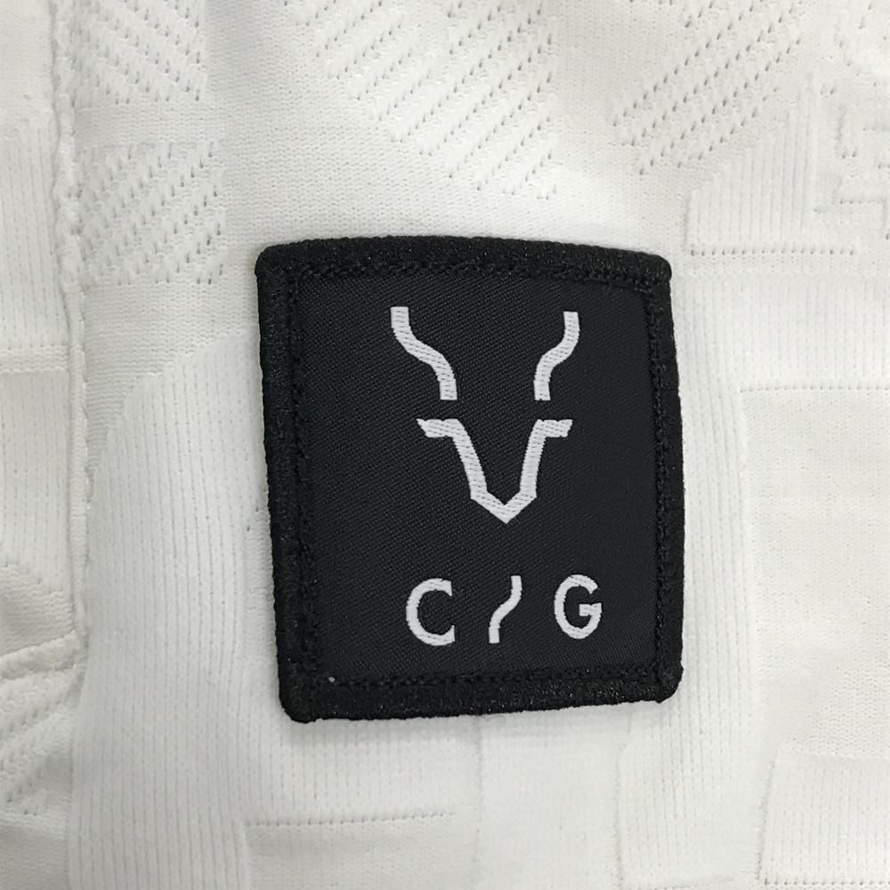 CPG ジャケットブルゾン 白 英字地模様 肩 袖ロゴライン 立体ロゴ レディース 3 L ゴルフウェア モデル