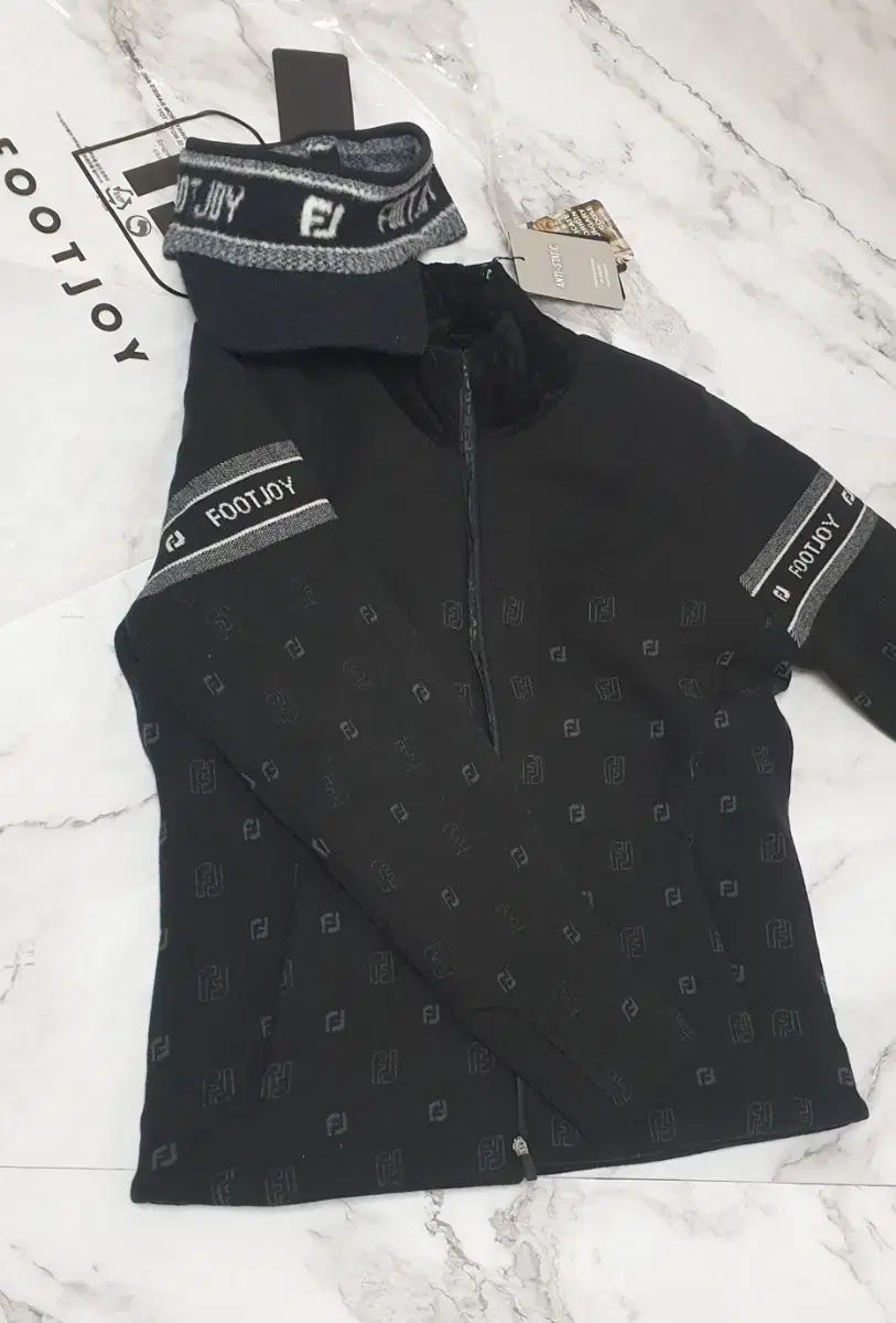 フットジョイ グース 防風 ニット ジップアップ 帽子 セット ブラック