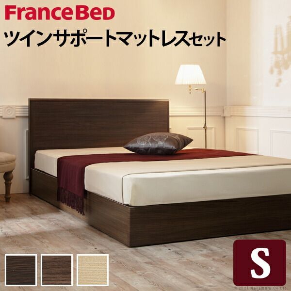 フランスベッド フラットヘッドボードベッド 〔グリフィン〕 シングル ツインサポートスプリングマットレスセット ベッド 木製 国産 省スペース マットレス付き 高密度連続スプリング 防ダニ 抗菌 防臭 寝具