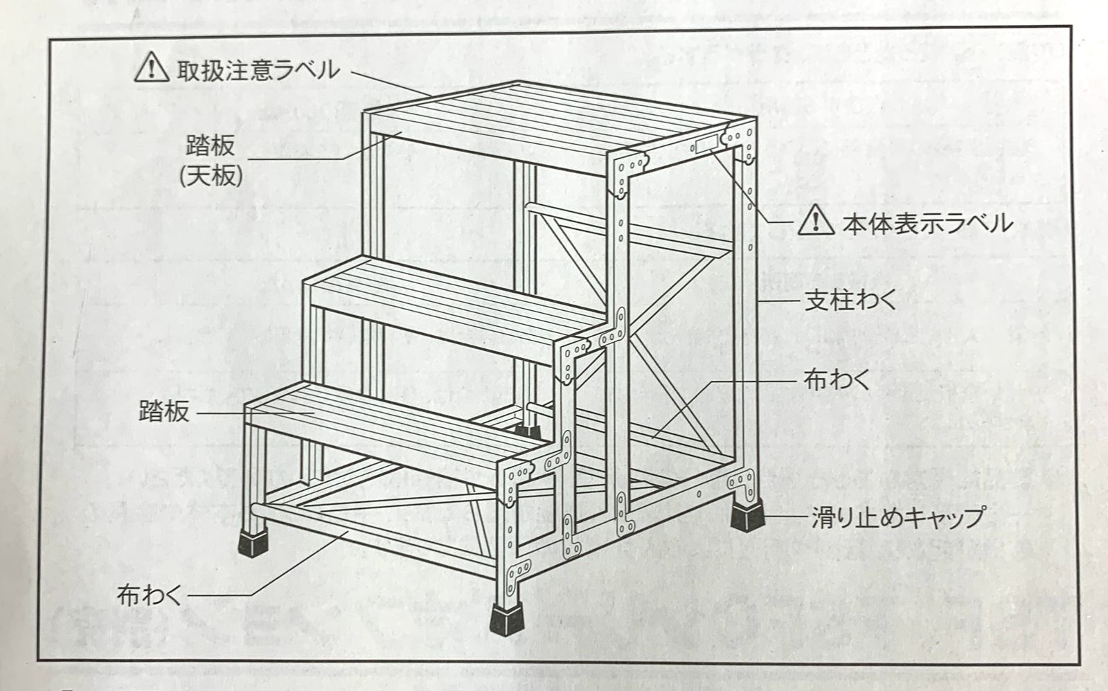 ・滑り止めキャップはスクリベットで取り付けていますのでプラスドライバーでの交換が可能なアルミ製作業用踏台です。