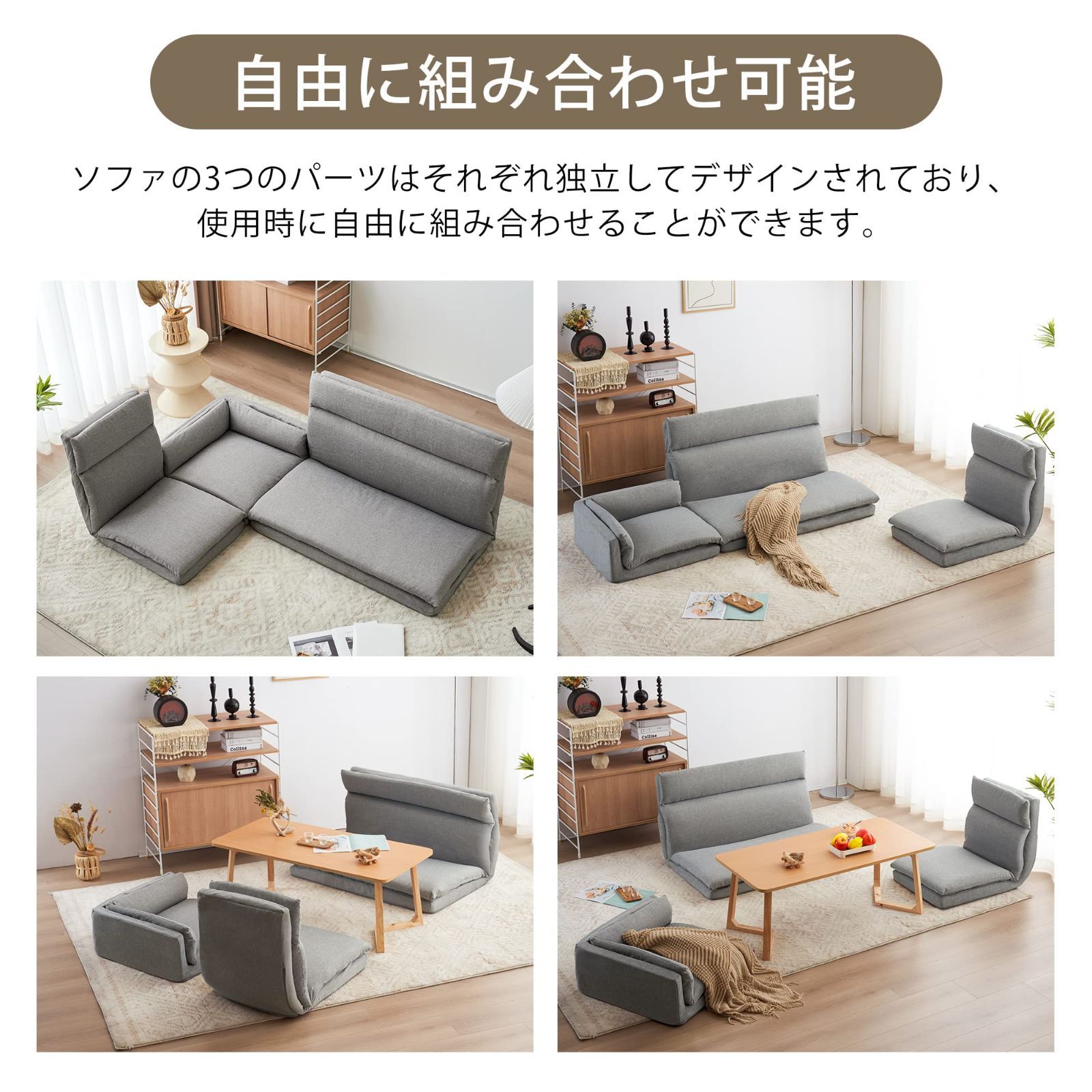 3点セットフロアソファ 一人用・二人用・コーナータイプのフロアソファ。繋げてワイドに、個別で座椅子のように、と使い方の幅が広がるソファです。