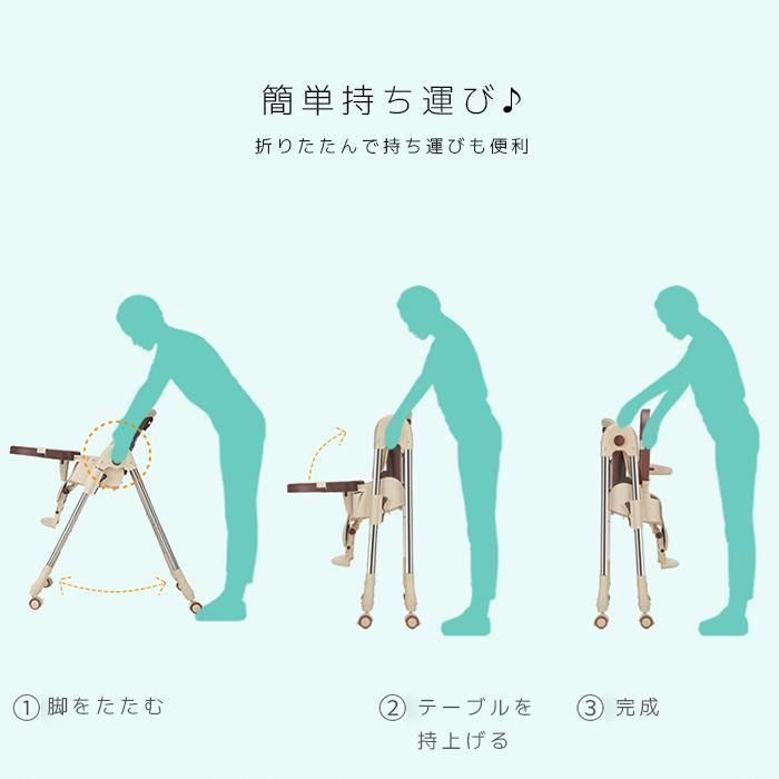 ベビーチェア 折りたたみ 収納 角度調整 高さ調整 ベビーチェアー テーブル付き キャスター付き シートベルト ハイチェア 子ども椅