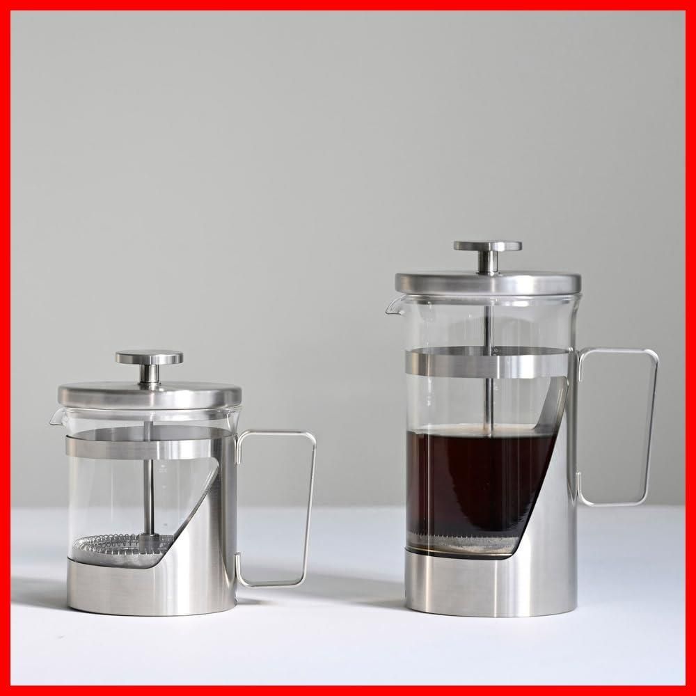 【ダブルメッシュプレス式コーヒーメーカー】 オールステンレス製のプレス式コーヒーメーカー。フィルターが二重になっており、滑らかな味わいを愉しめます。径は90㎜で広いため、洗いやすく、プレスした際に安定感があります。
