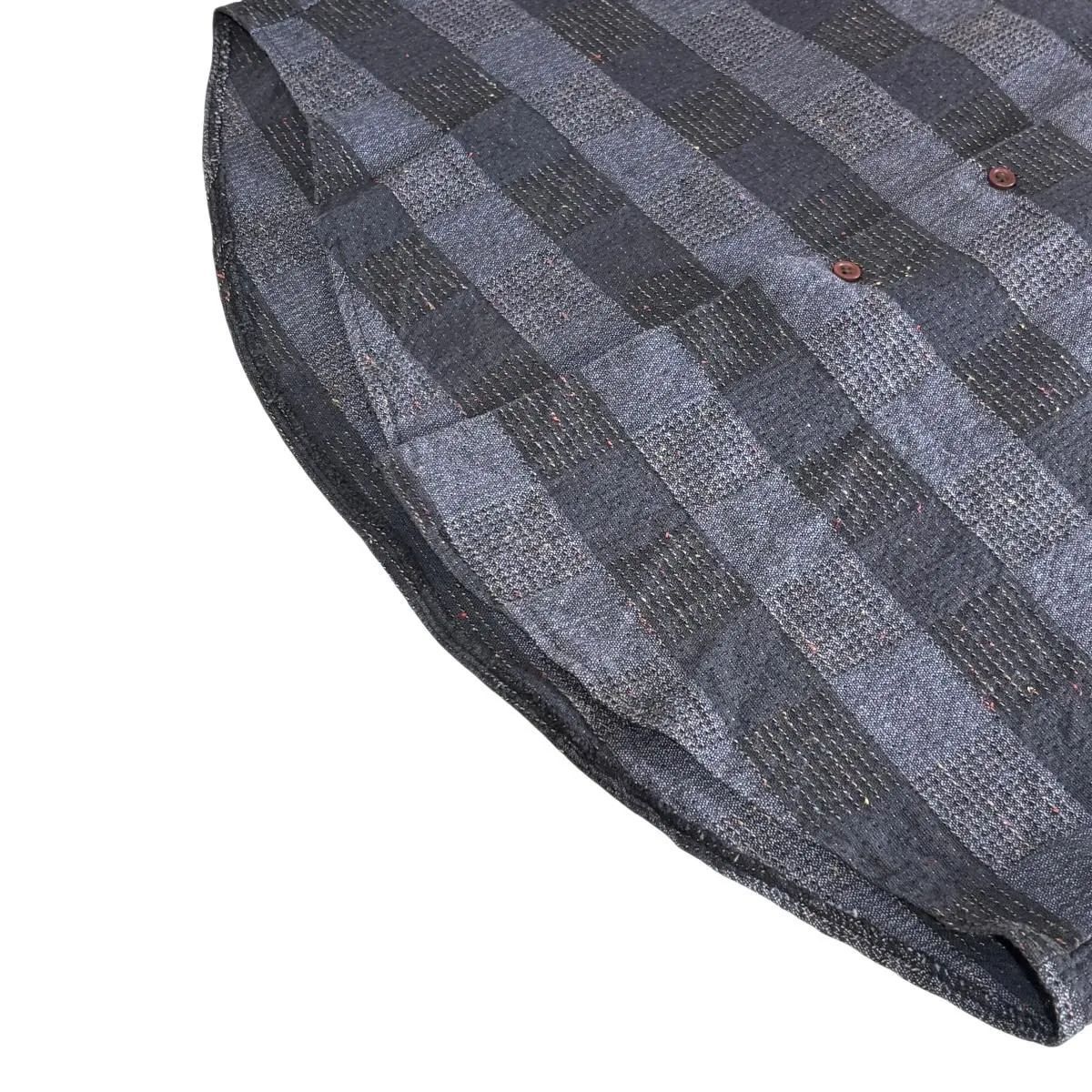 90 s tony lambert Nep pattern L SHIRT トニーランバート 開襟 長袖チェックシャツ M ネップ柄 ボーダー 紺 古着