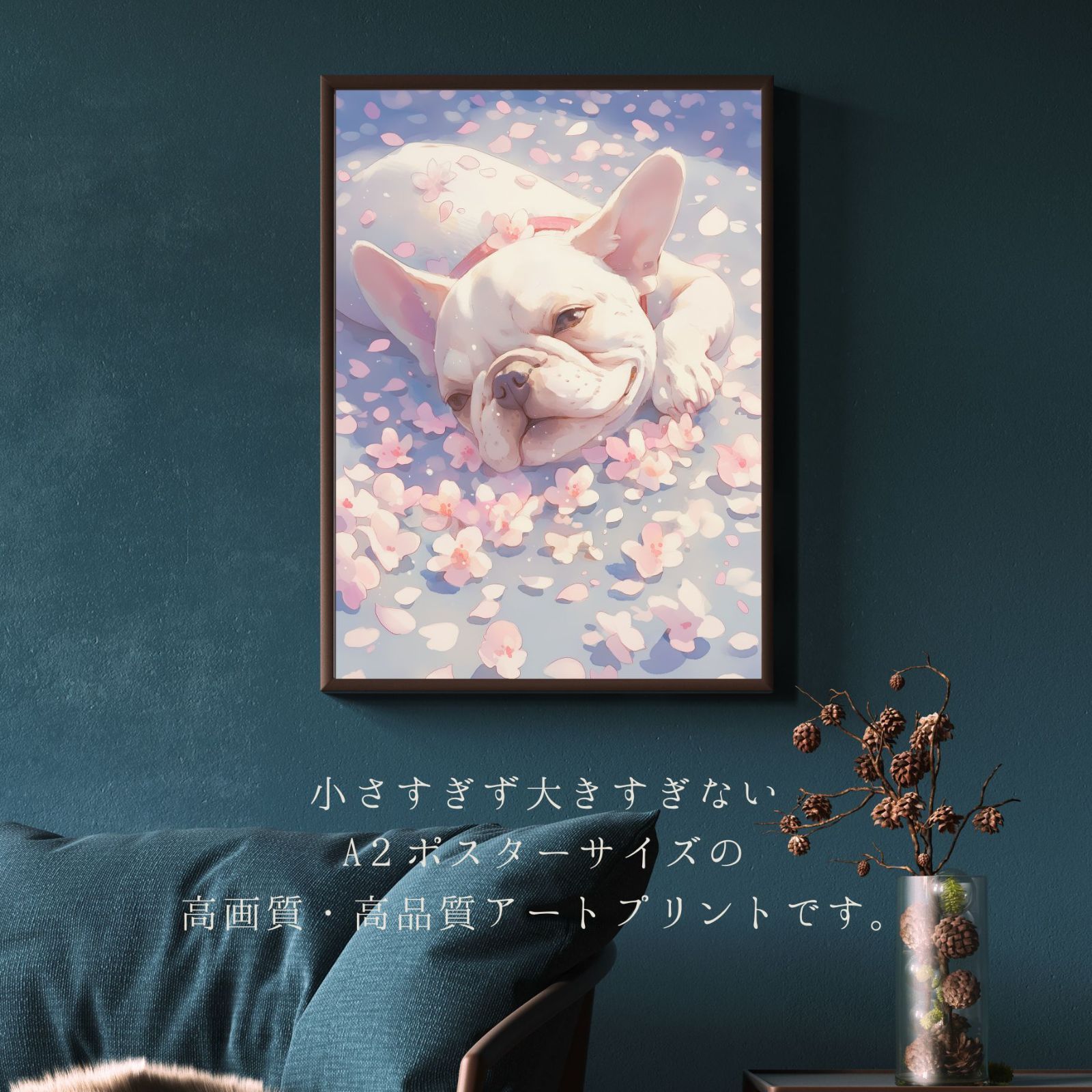 春らしいフレンチブルドッグ犬のドッグアートで、新しい生活をスタートさせてください。