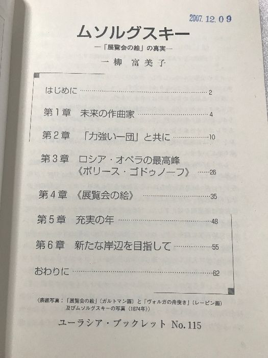 ムソルグスキー: 「展覧会の絵」の真実 (ユーラシア・ブックレット No. 115) 東洋書店 一柳 富美子