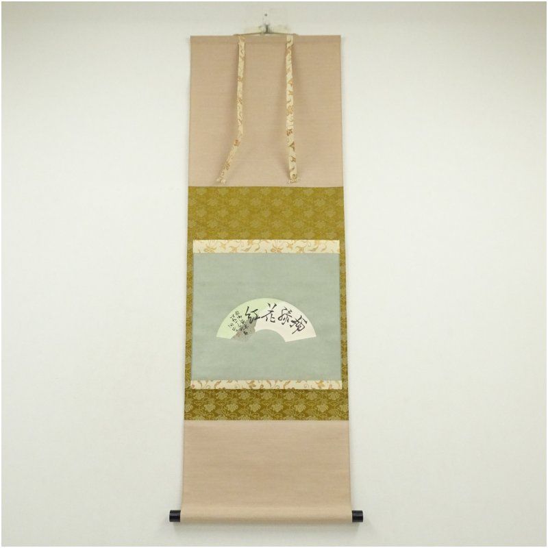 妙心寺派 芳賀幸四郎 洞然 筆 柳緑花紅 扇面 肉筆紙本掛軸 共箱 掛け軸 床の間 書 おしゃれ 絵画 表具 芸術 茶道 年中掛け インテリア 茶掛 掛物 和室 春