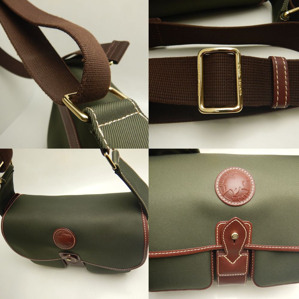 HUNTING WORLD ハンティングワールド 7408 SFL GR ショルダーバッグ キャンバスxレザー カーキ ブラック メンズ 253368