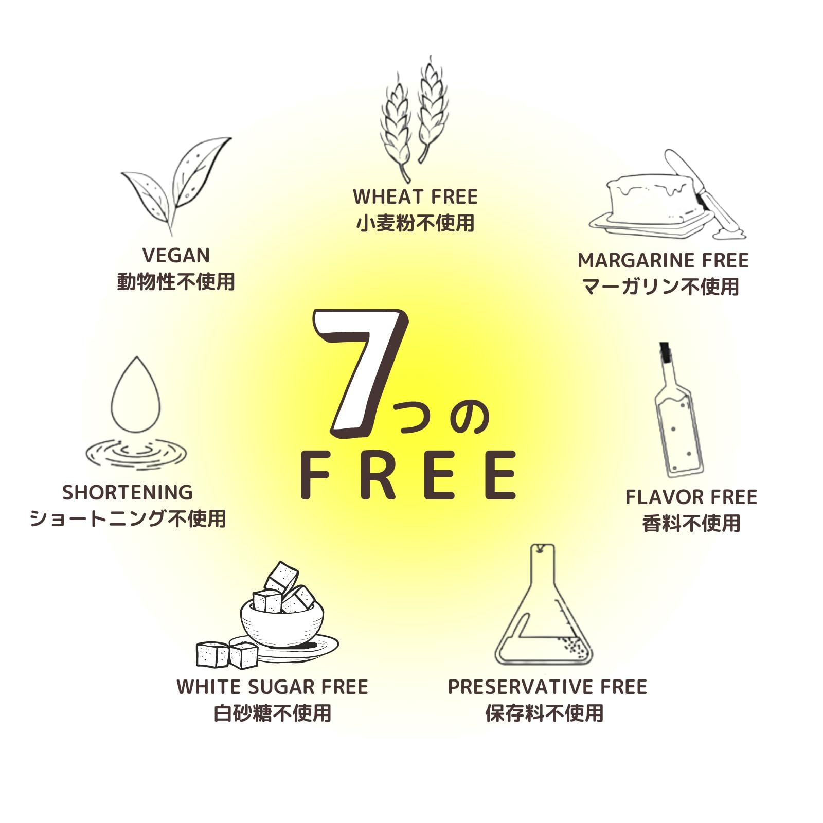 【7つのFREE】白砂糖・香料・保存料・小麦粉・マーガリン・ショートニング・動物性不使用