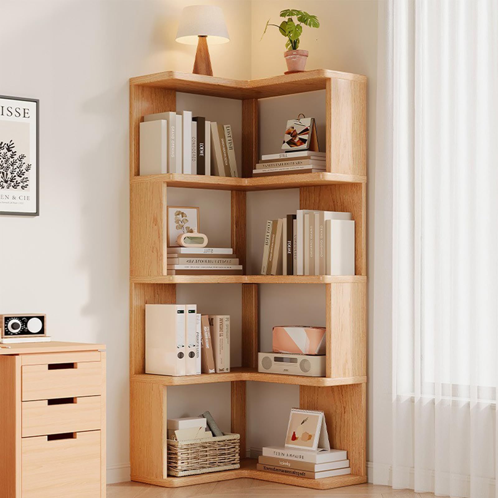 本棚 リビング収納 5段 幅40×奥行40×高さ130cm 大容量 コーナー収納 省スペース 多機能収納ラック 木製ラック 角置き可 (5段)
