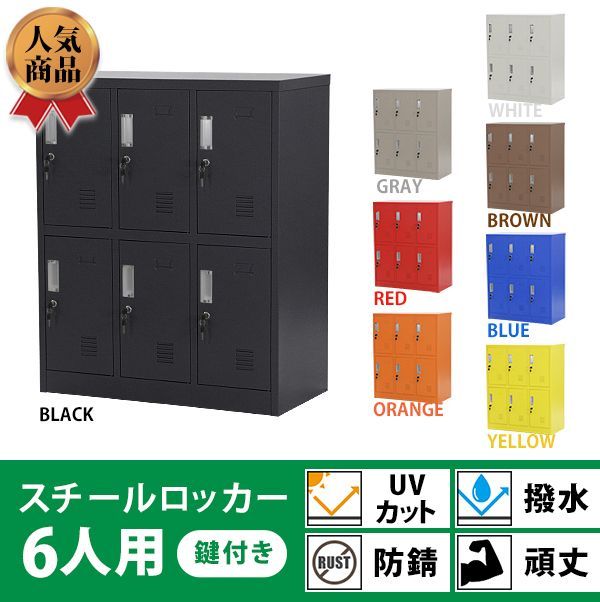 ロッカー おしゃれ スチールロッカー 6人用 鍵付き 選べる 棚板付き 3列2段 UVカット 撥水 防錆 頑丈 扉 オフィスロッカー シューズロッカー シューズボックス スリム 更衣ロッカー 靴箱 sy 23 l 6 d イエロー