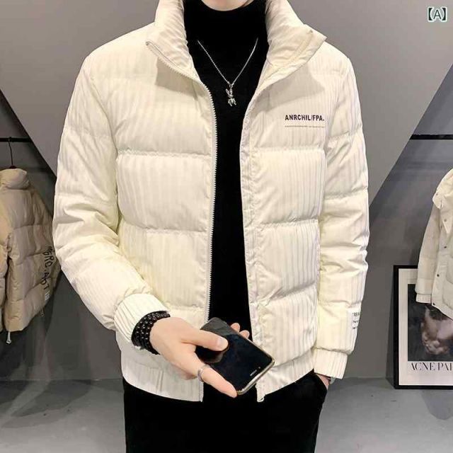 L 秋冬 コーデ メンズ 服 シンプル ファッション オシャレ 大人 かっこいい 大きいサイズ ストリート 紳士服 ストライプ スタンド ダウン ジャケット 韓国スタイル スリムフィット 軽 暖かい ホワイトダックダウン