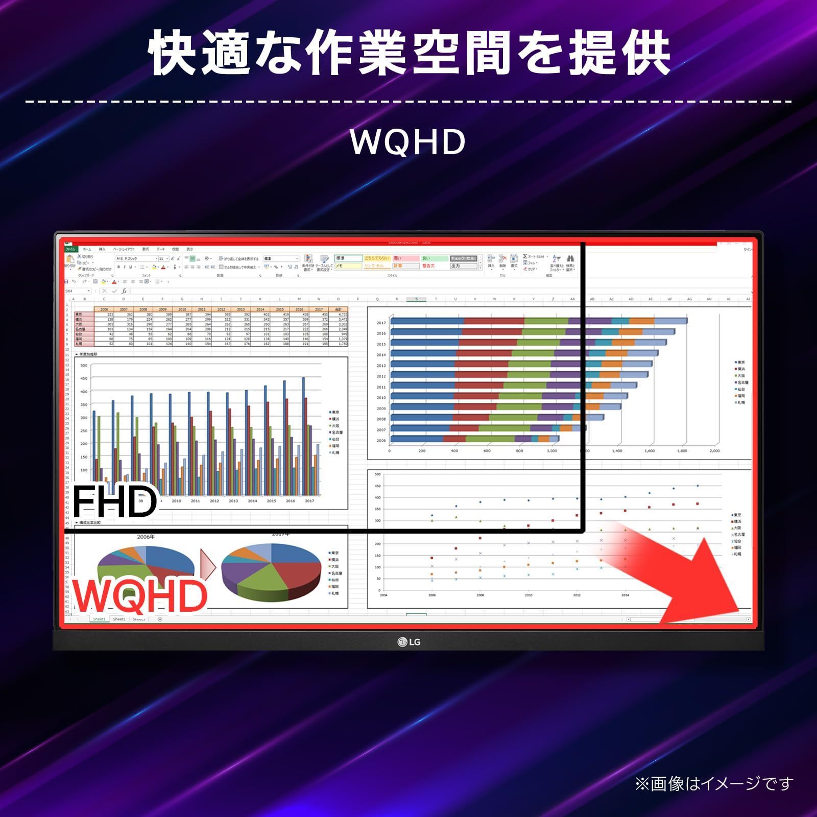 【美しさと速さを両立】 IPS 1ms(GTG) 写真家やグラフィックデザイナーなど、多くの画像や映像の専門家が好んで使用するとされるIPSパネルは、広視野角かつ発色鮮やかな自然な色再現が特長。そのIPSパネルの応答速度がGTGで1msに対応。自然で美しい映像表現に加え、高速な動きの映像もくっきりと再現します。