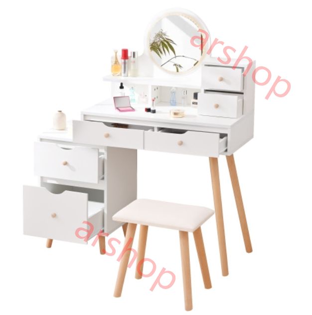 ドレッサー化粧台 テーブル 鏡台 LEDライト付き スツール付き 引き出し 収納 サイド収納 メイク台 シンプル 大容量
