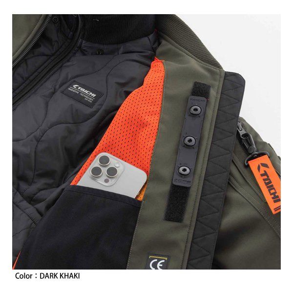 ●プロテクター内蔵のアウターと保温力をもつ中綿入りインナージャケットの二重構造で、気温やシーンに合わせてそれぞれ単体や組み合わせた着用が可能です。