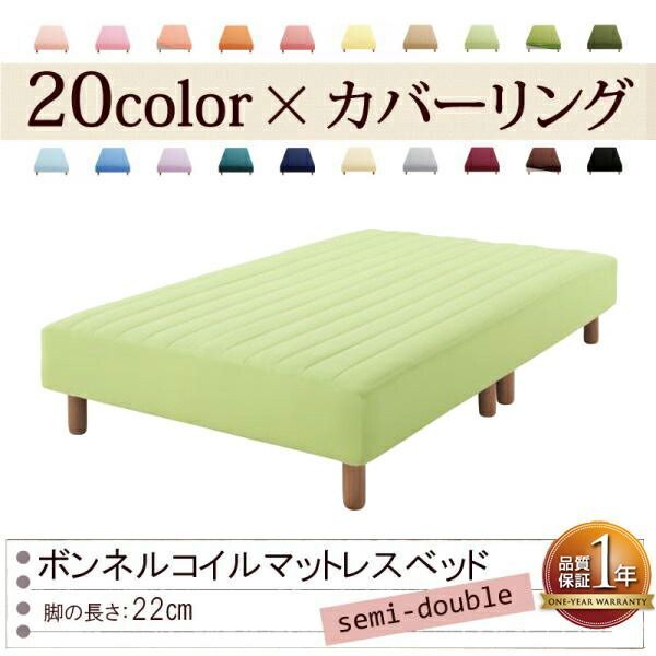 色 寝心地が選べる! カバーリングボンネルコイルマットレスベッド 脚22 cm セミダブル ペールグリーン