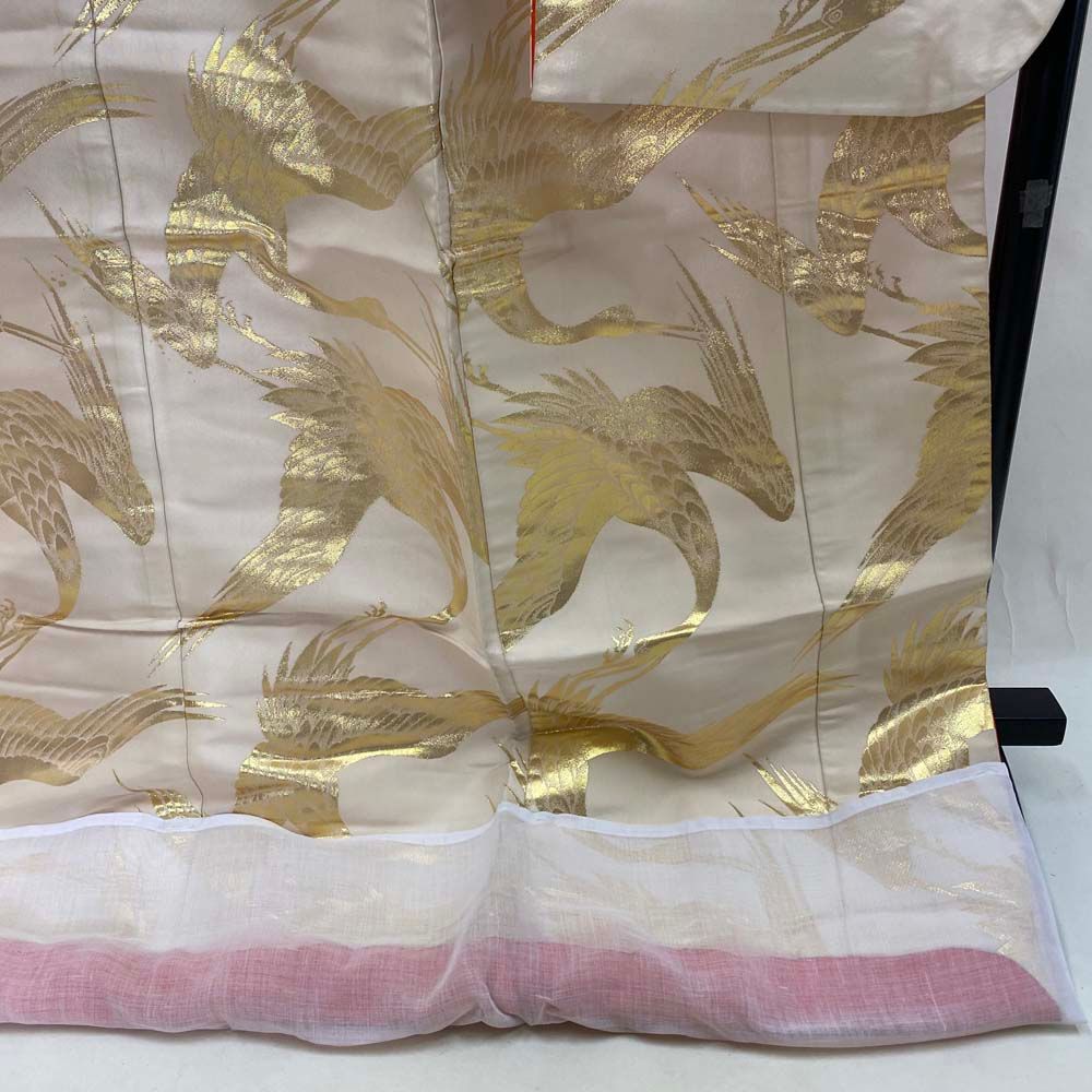 色打掛 正絹 鶴 刺繍 白 シルバー 打掛 Mサイズ 裄64 花嫁衣裳 婚礼 リサイクル ブライダル ウエディング 着物 4030