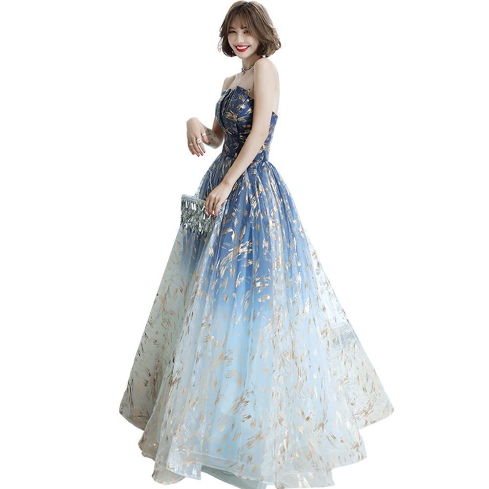3XL_ブルー [JINZUOMA] レディース イブニングドレス ドレス ワンピース ロングドレス 結婚式ドレス 宴会ドレス 花嫁ワンピース ゴージャス エレガント フォーマル 肩出し セクシー 甘い 結婚式 披露宴 二次会 演奏会 パーティー 卒業式 (ブルー,3XL,3XL)