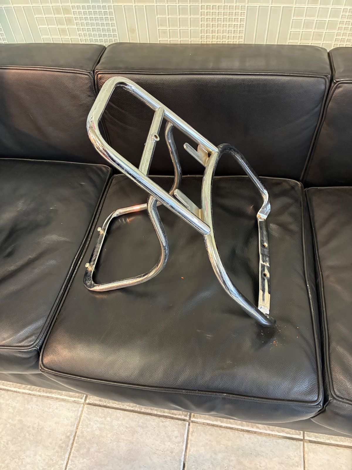 ベスパPX用の純正のトップボックスリアキャリアです。比較的状態は良いと思います。定価は¥27500です。あくまで新品とご理解の程よろしくお願い致します。
