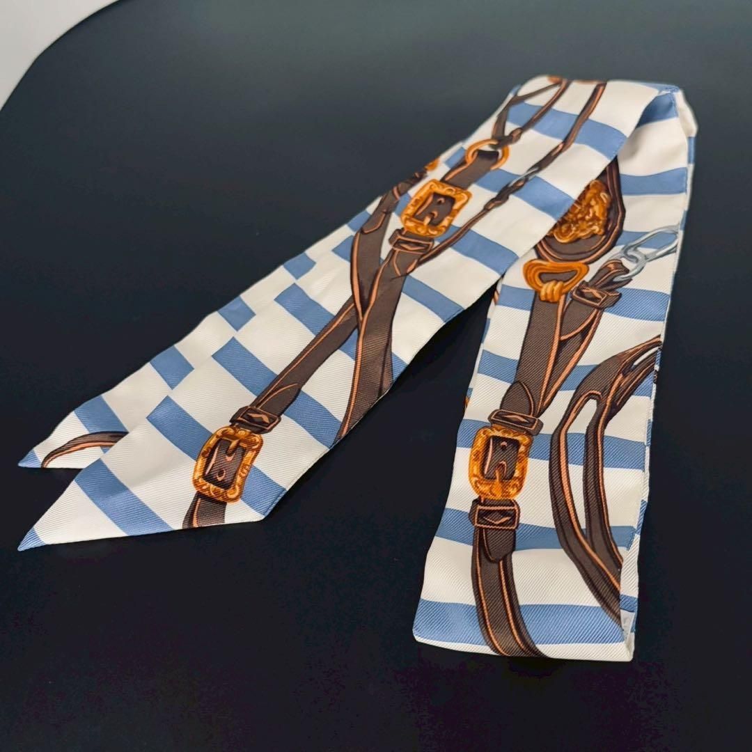 エルメス HERMES ツイリー スカーフ ストライプ BRIDES de GALA 式典用馬勒 き ベルト柄 プリント ボーダー