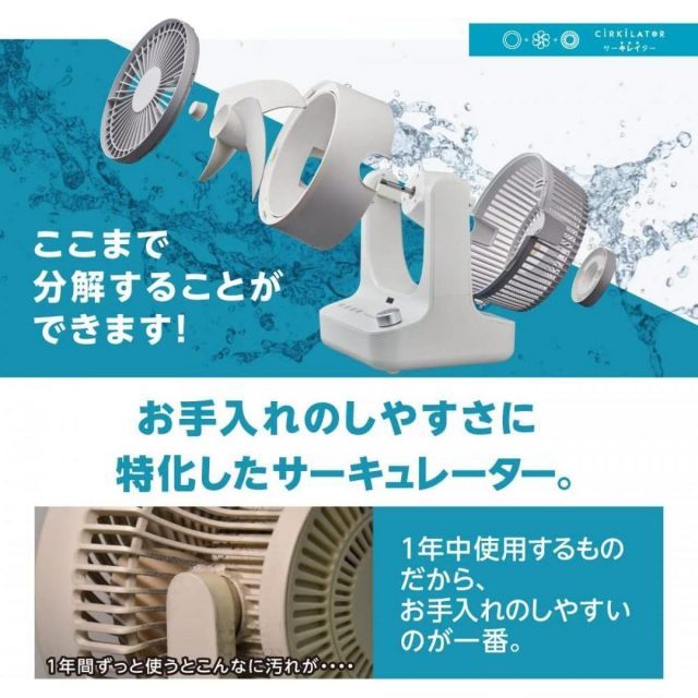 ファンの後ろまで細かく分解、まるっと洗えるサーキュレーター。