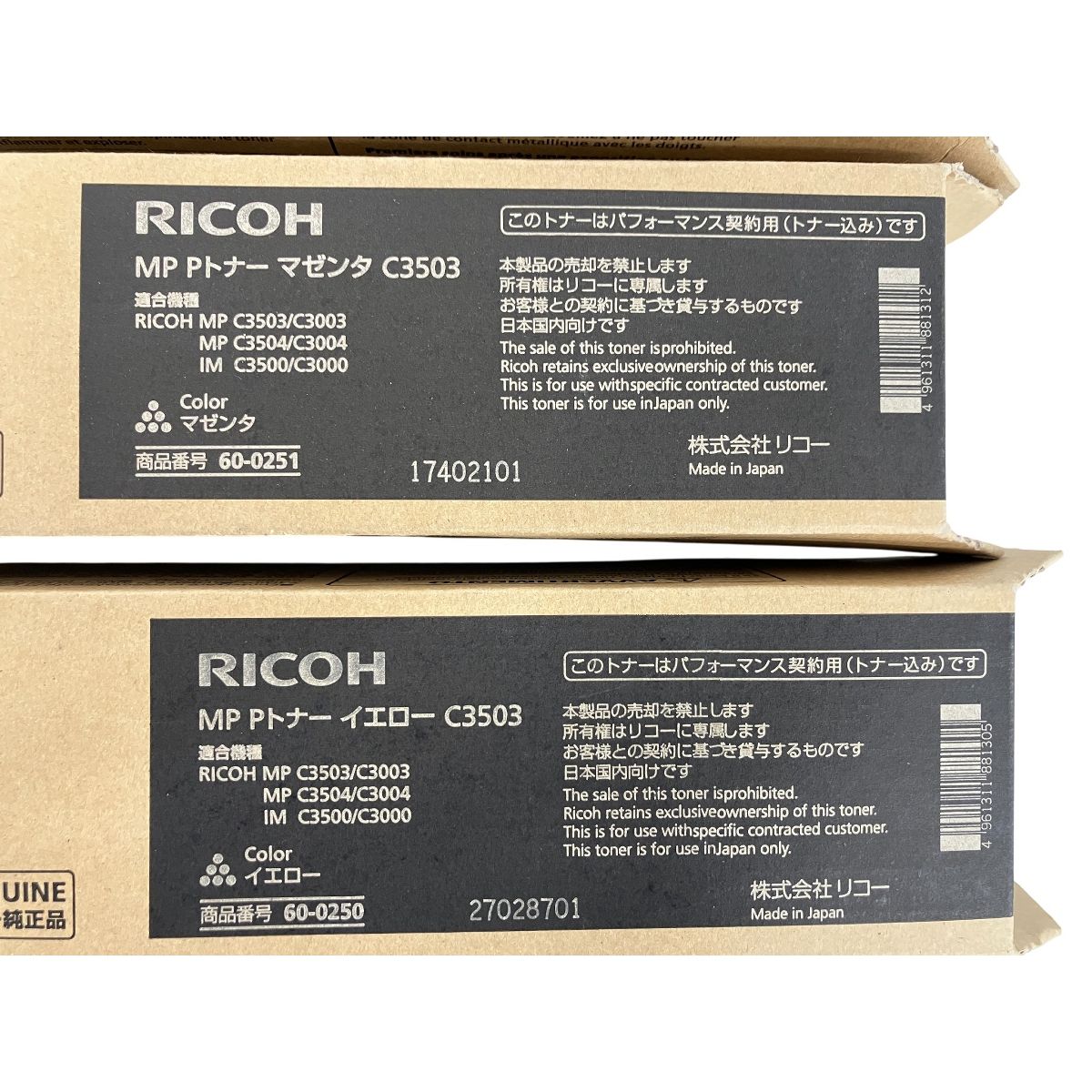 こちらは「RICOH リコー C3503 ブラック マゼンタ シアン イエロー 純正トナーカートリッジ 4色セット 未使用 」でございます。