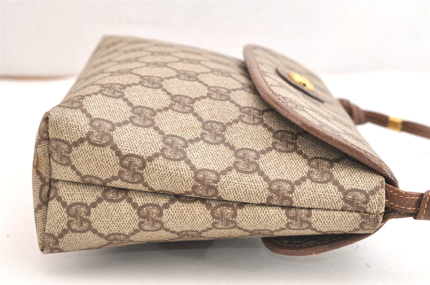GUCCI グッチ ヴィンテージ ショルダークロスボディーバッグ 財布 GGピーブイシー レザー ブラウン 4096 N