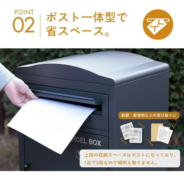 宅配ボックス ポスト一体型 2段 大容量 60 L プッシュ錠 施錠 ロック セキュリティ 宅配 置き配 スチール製 亜鉛めっき鋼 腐食に強い parcelbox 郵便受け