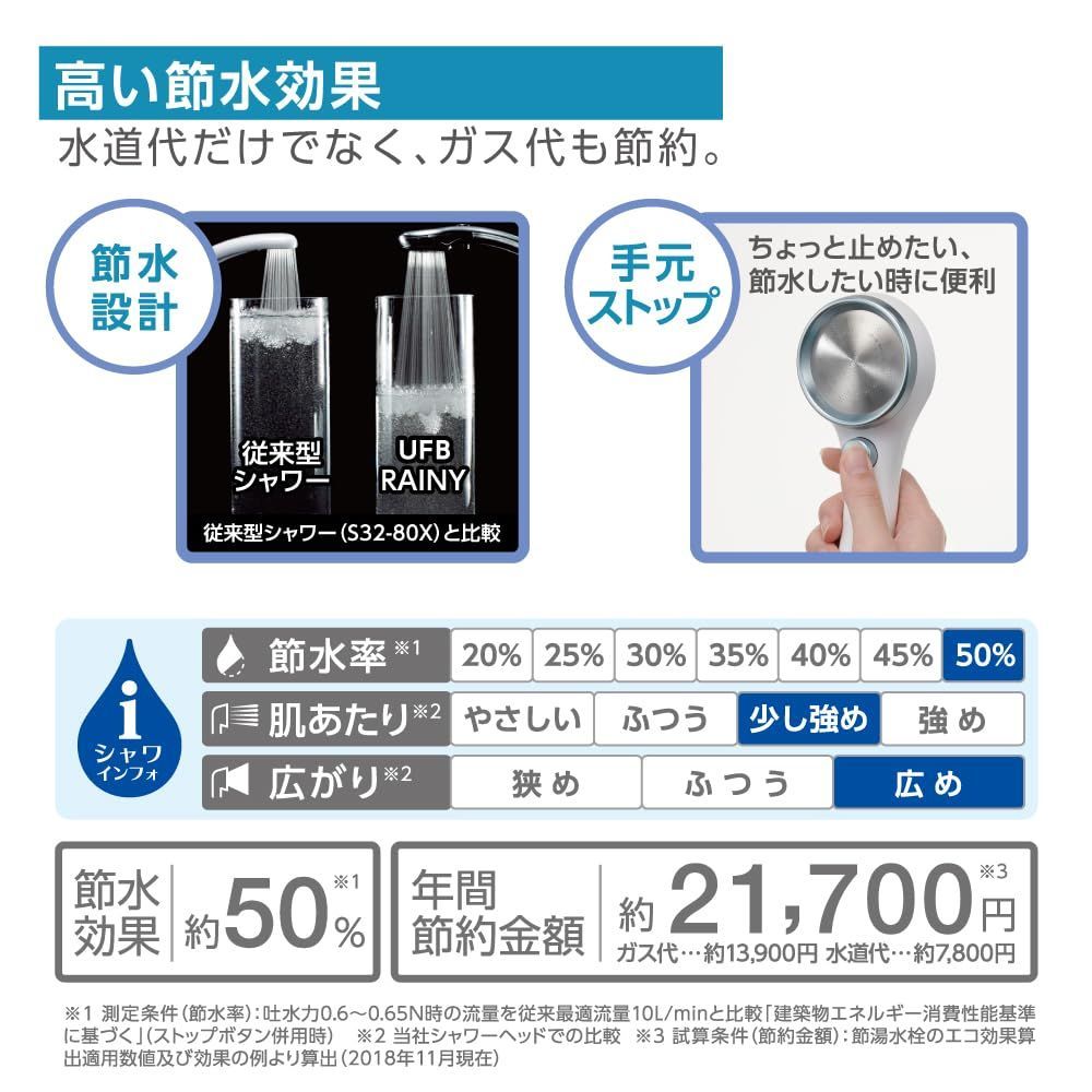 【大人気シリーズRAINYに新商品登場!】RAINYの持ち味は残したまま、ウルトラファインバブル発生装置が内蔵されました。ホワイトのボディーにメタリックブルーのリングで清潔感のあるデザイン。