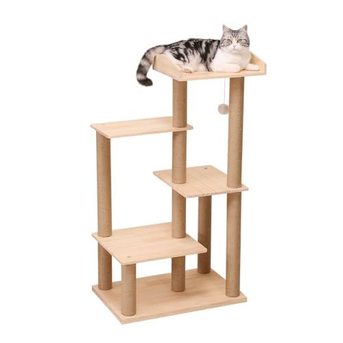 キャットタワー 据え置き 木製 スリム おしゃれ 多頭飼い 大型猫 パイン材 無垢材 木登り 天然木 キャットツリー コンパクト高さ112 cm 重厚感 面取り加工 省スペース コーナー インテリア性 シニア猫 成猫 子猫 猫タワー キャットウォーク 中型