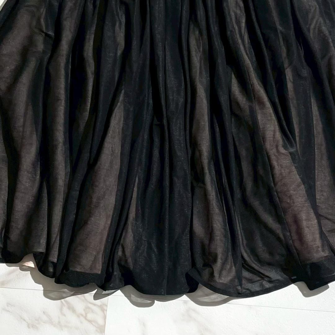 24 AW ボーダーズアットバルコニー シフォンフ スカート 黒 38 膝丈 シアー 近年モデル サイドジップ ギャザー