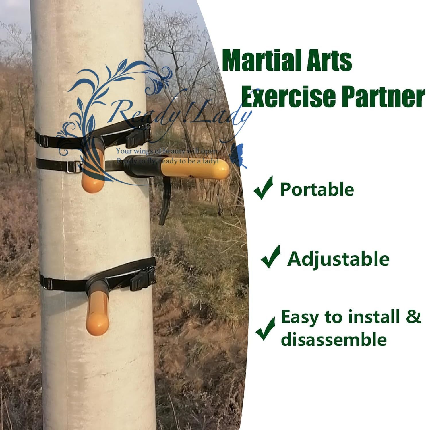 ✅ セットアップが非常に簡単: 調節可能なストラップと強化されたロックを備えた木製の翼春ダミーアームは、木や柱などの硬い円筒形の物体に取り付けることができます。 使用しないときはいつでも分解でき、持ち運びや保管が簡単です。