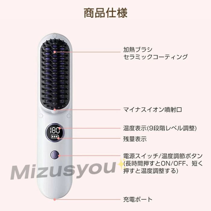 ヒートブラシ ミニ コードレス アイロン コードレスブラシアイロン 前髪 機内持ち込banlt 19