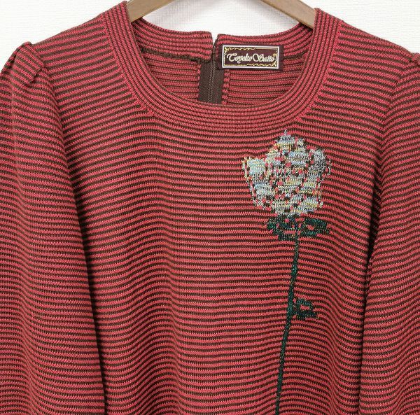 ◎商品名(タイトル):#anc サイトウトヨコ 斉藤都世子 ワンピース ニット 長袖 ジップアップ ボーダー 花刺繍 フレア ピンク系 緑系 レディース [966059]