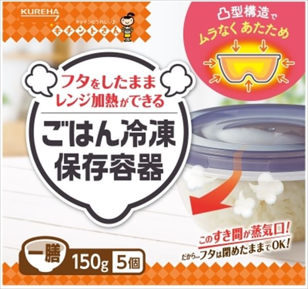 フタを閉めたままレンジ加熱ができる。美味しく保存できる量(g)・あたため時間の目安をフタに表示。フタがごはんをつぶさず、ふんわり保存ができる。フチに溝が無いので、洗いやすく水滴が残りにくい。