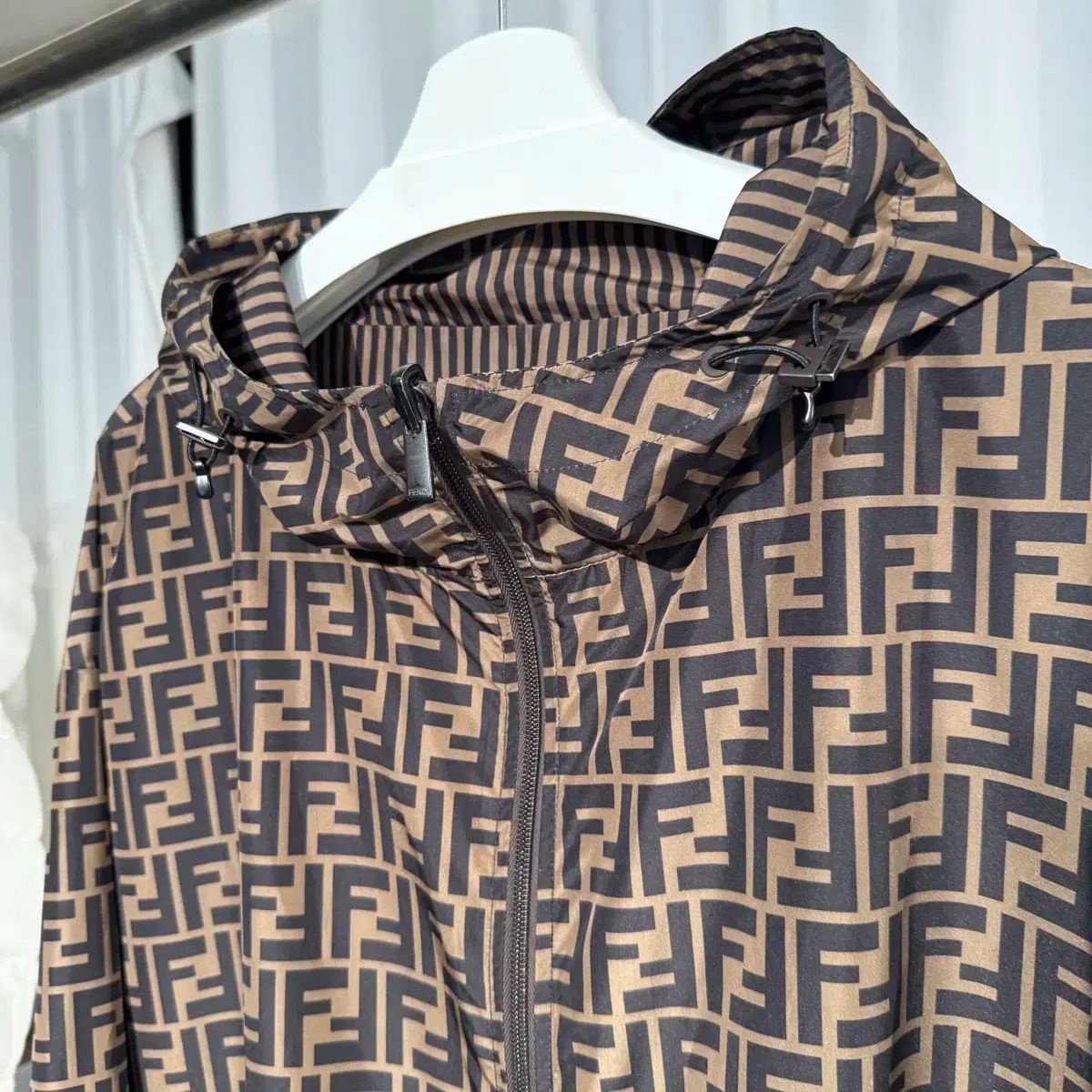 フェンディ FF モノグラム リバーシブル ロング ウィンドブレーカー